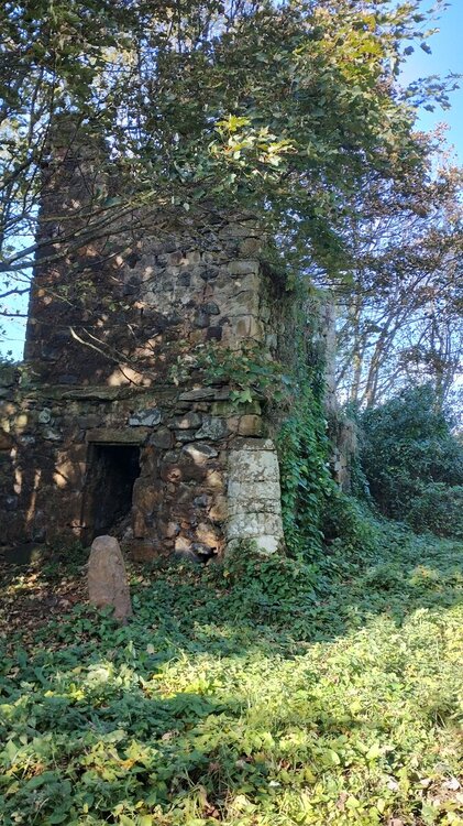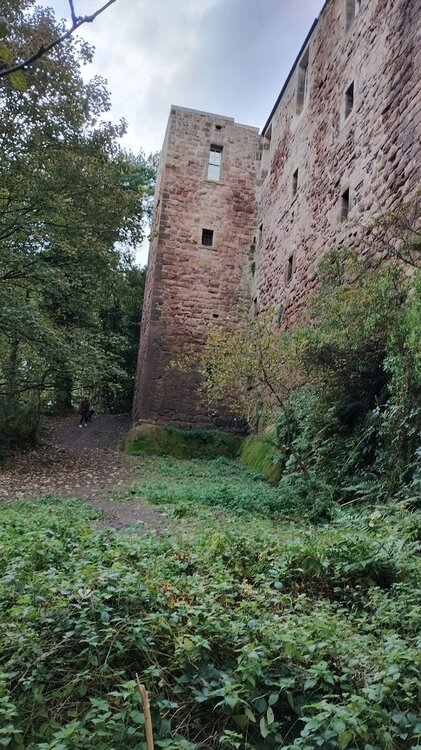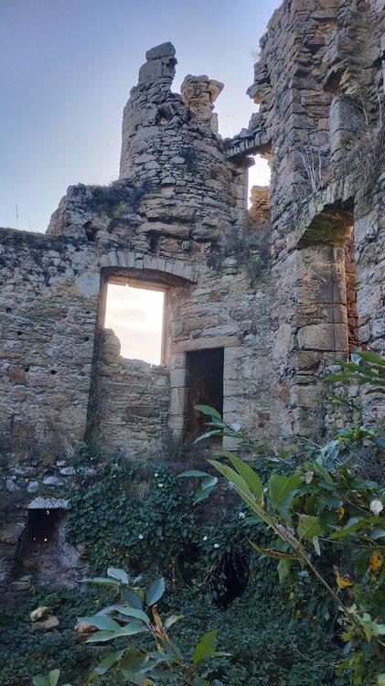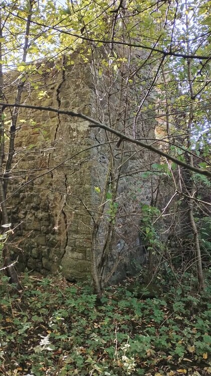 I visited this castle while on holiday earlier this month. It stands in the middle of a field, with trees and bushes growing up to hide it.